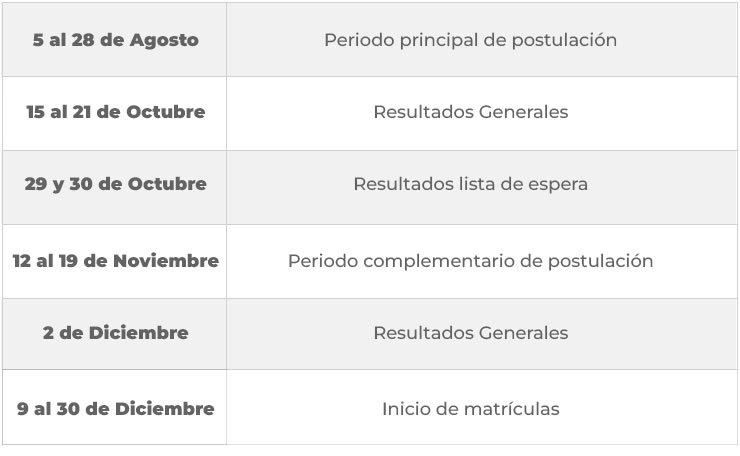 Periodo Principal de postulación a establecimientos educacionales en todas las regiones del país.